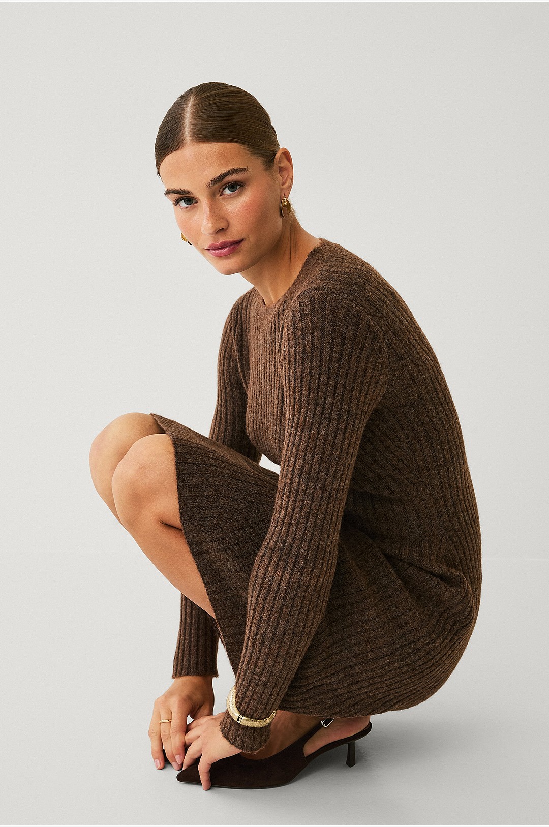 Ellos Collection - Ribbestrikket kjole - Brun