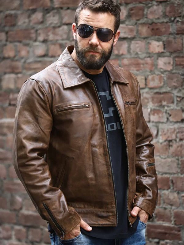 Brun skinnjakke