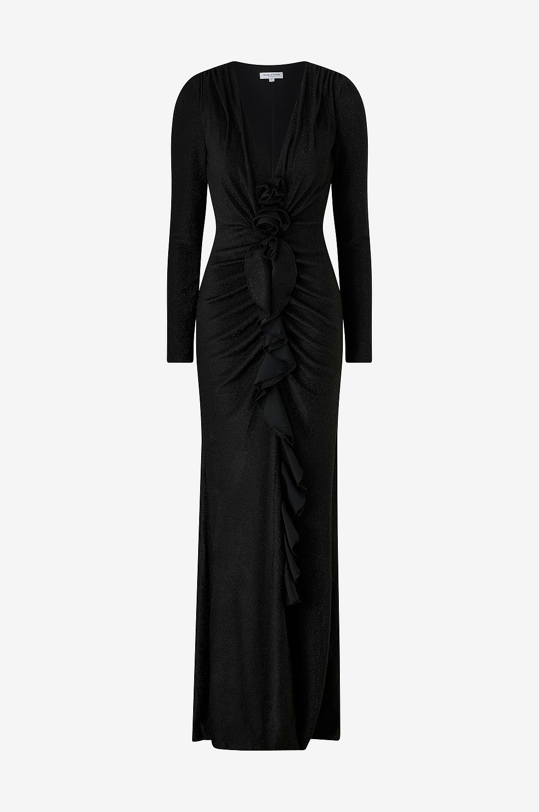 Bubbleroom - Maxikjole Sparkling Low V-neck Slit Gown - Svart
