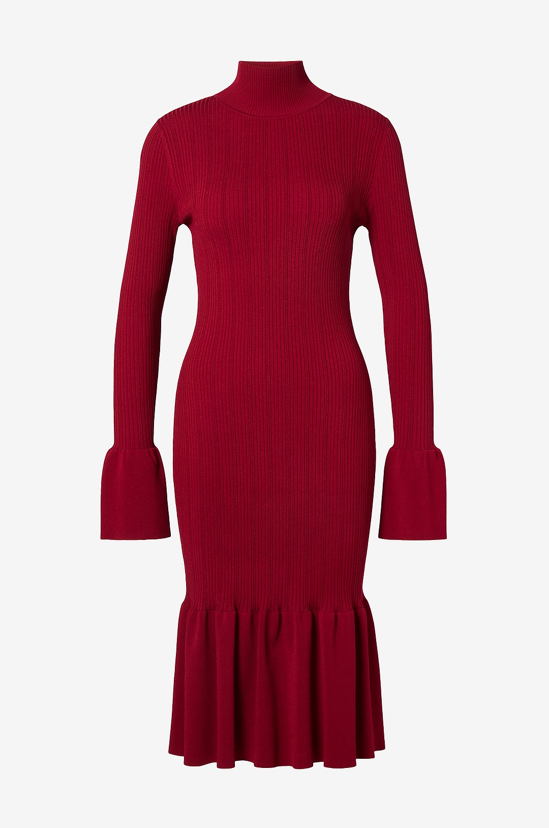 By Malina - Kjole Amalia High Neck Knitted Midi - Rød