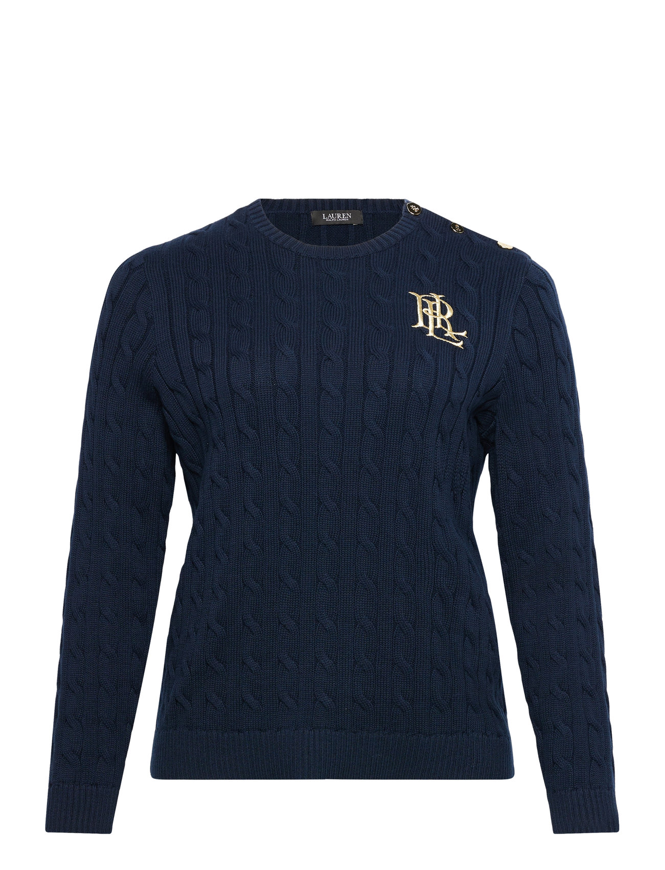 Lauren Women Button-Trim Cable-Knit Cotton Sweater - Navy - 50-52