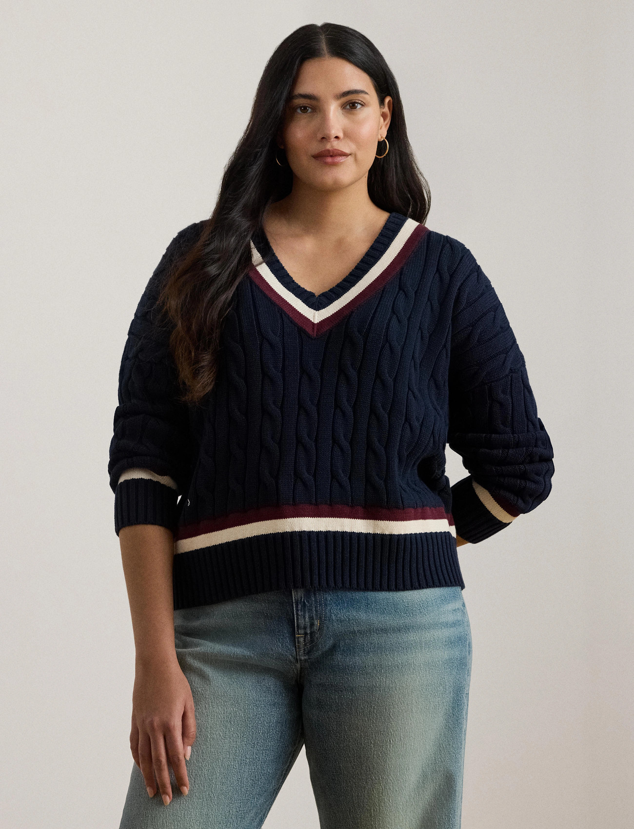 Ralph Lauren Cable Knit V-neck Sweater (Dame)