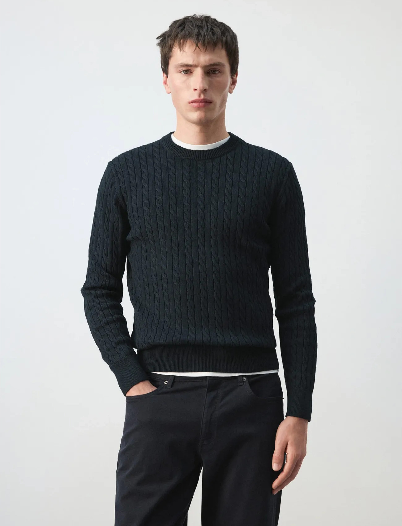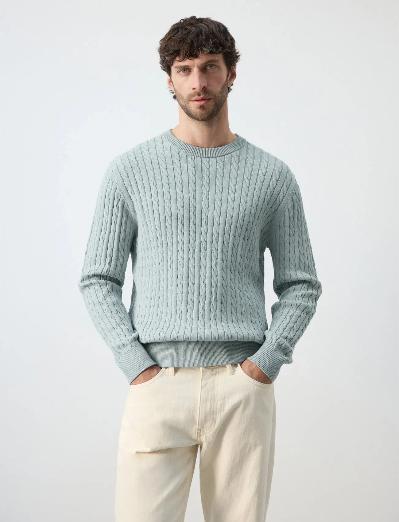 Frislid - noah cable knit - genser - herre - bomull,fletter,hvit,tynn