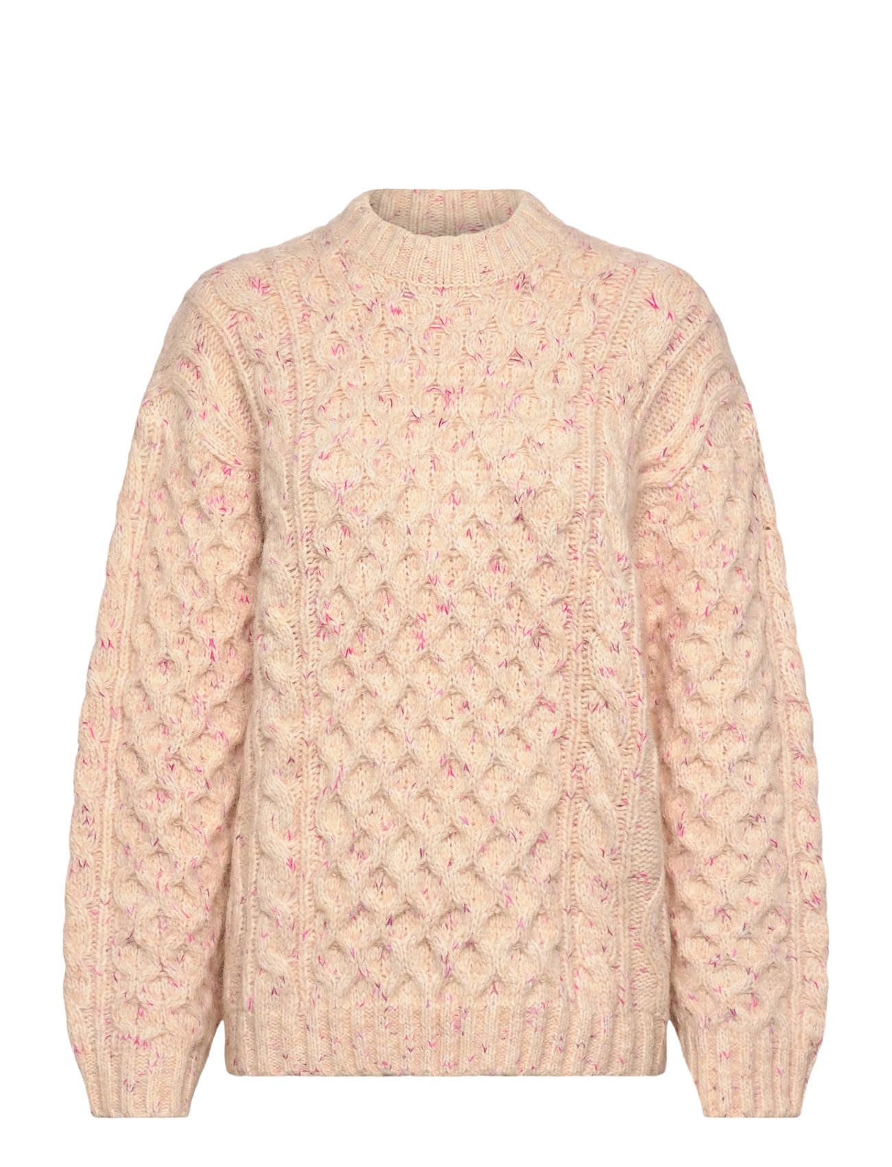 Monki Long Cable Knit Textured Sweater - Pink - XL