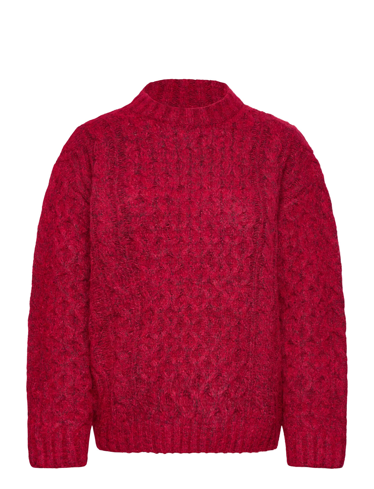 Monki Long Cable Knit Textured Sweater - Red - L