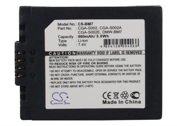 Batteri til kamera for Panasonic Lumix DMC-F7-B, Lumix DMC-F7-N, Lumix DMC-F7PP og andre.