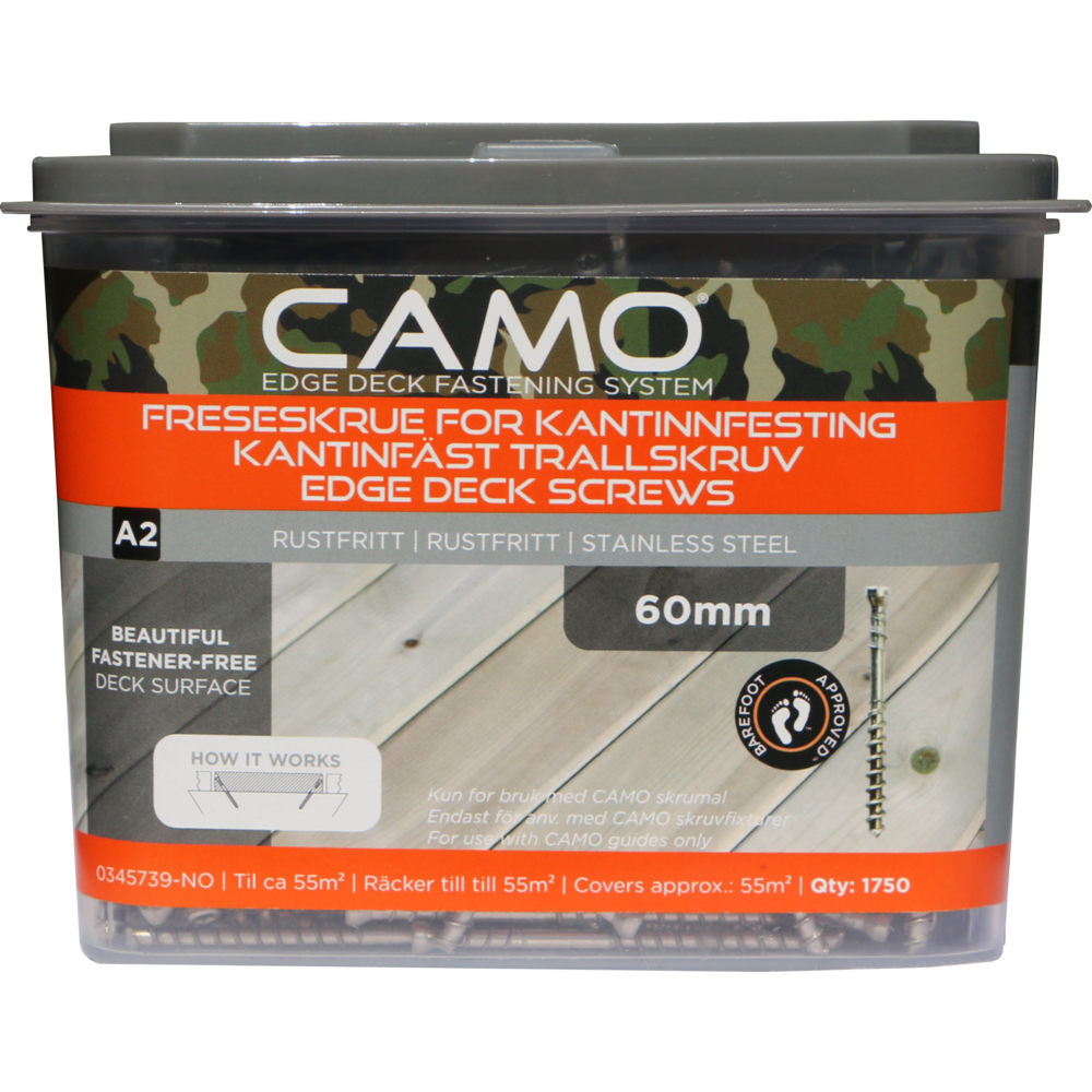 Edge Skjult terrasseskrue 60x4,2mm Freseskrue Syrefast A4 (Antall: 200 stk)