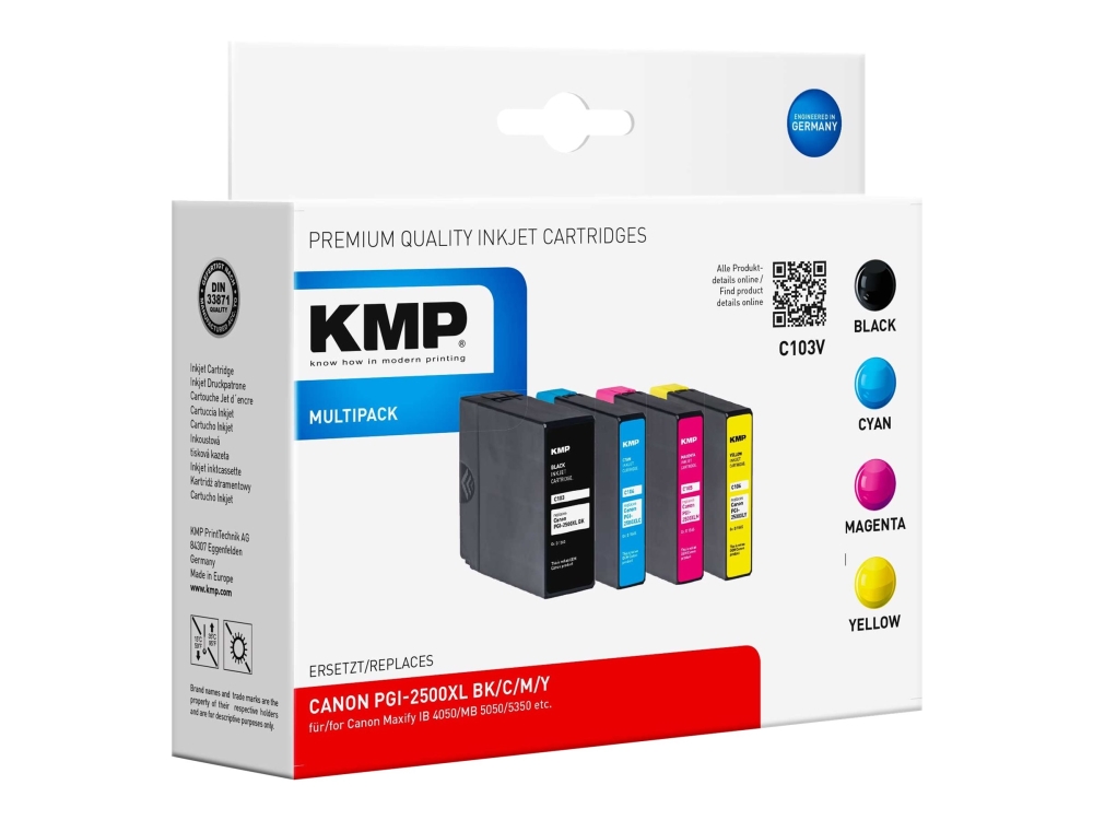 Kmp Multipack C103v - 4-Pack - Svart, Gul, Cyan, Magenta - Kompatibel - Tonerpatron (Alternativ For: Canon Pgi-2500Xl Bk, Canon Pgi-2500Xl C, Canon Pgi-2500Xl M, Canon Pgi-2500Xl Y) - For Canon Maxify Ib4050, Ib4150, Mb5050, Mb5150, Mb5155, Mb5350,