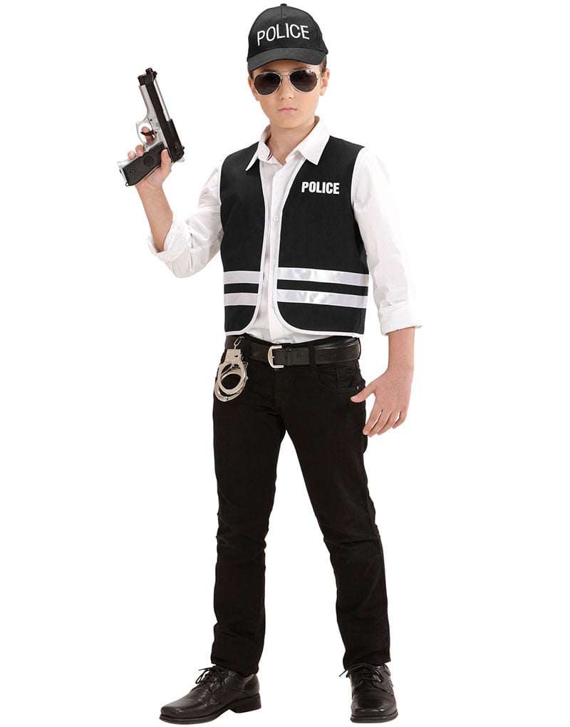 Politi Kostymesett til Barn med Vest og Caps - Strl 8-10 ÅR