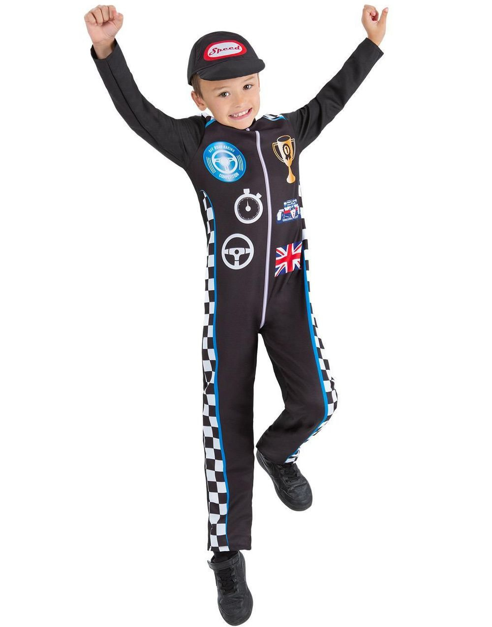 Svart Racing Driver Kostyme med Caps til Barn