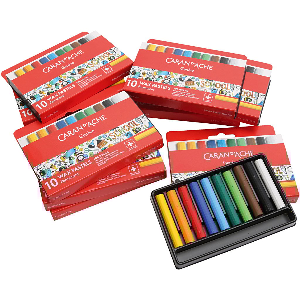 CARAN D’ACHE Neocolor II, klassesett, L: 10 cm, tykkelse 8,5 mm, Farge kan variere , ass. farger, 9x10 stk./ 1 pk.