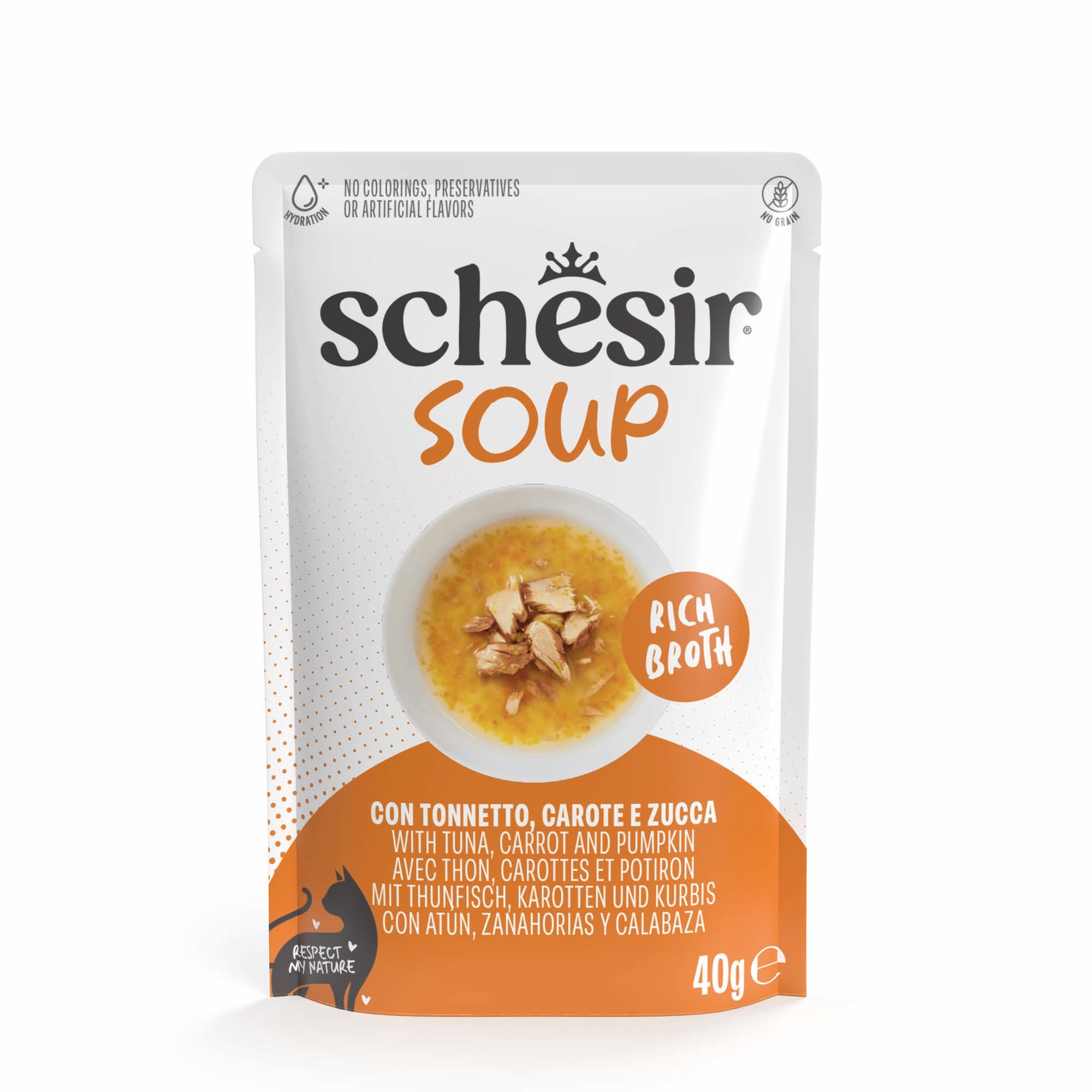 Schesir Cat Soup 12 x 40 g - Tunfisk, gulrøtter og gresskar