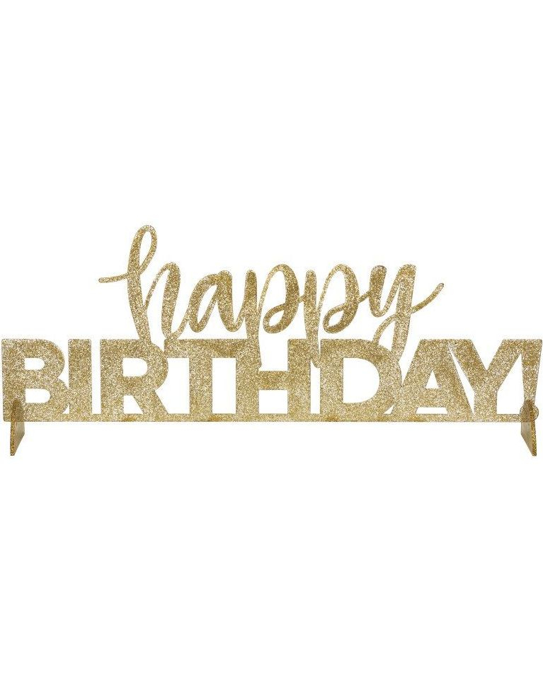 Gull Glitrende Akryl Bordskilt / Centerpiece - Happy Birthday