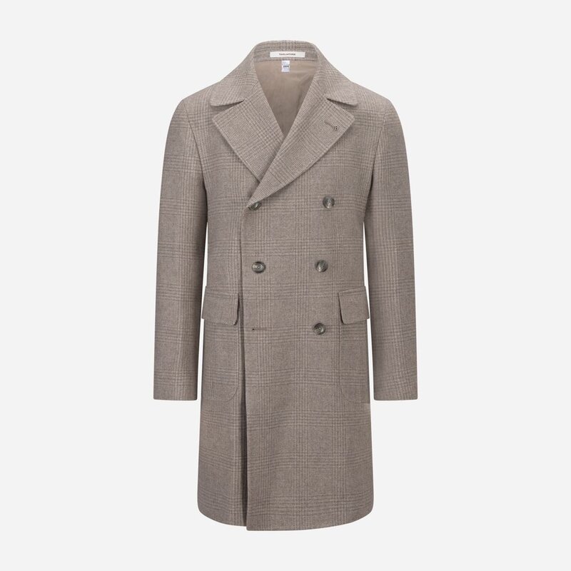 Thomas Double Breasted Coat - Beige Check
