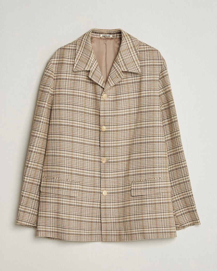 Auralee Silk/Linen Chore Jacket Beige Check