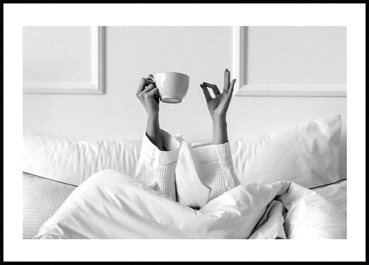 Woman With Coffee Cup On The Bed Plakat Plakat / 21x30cm