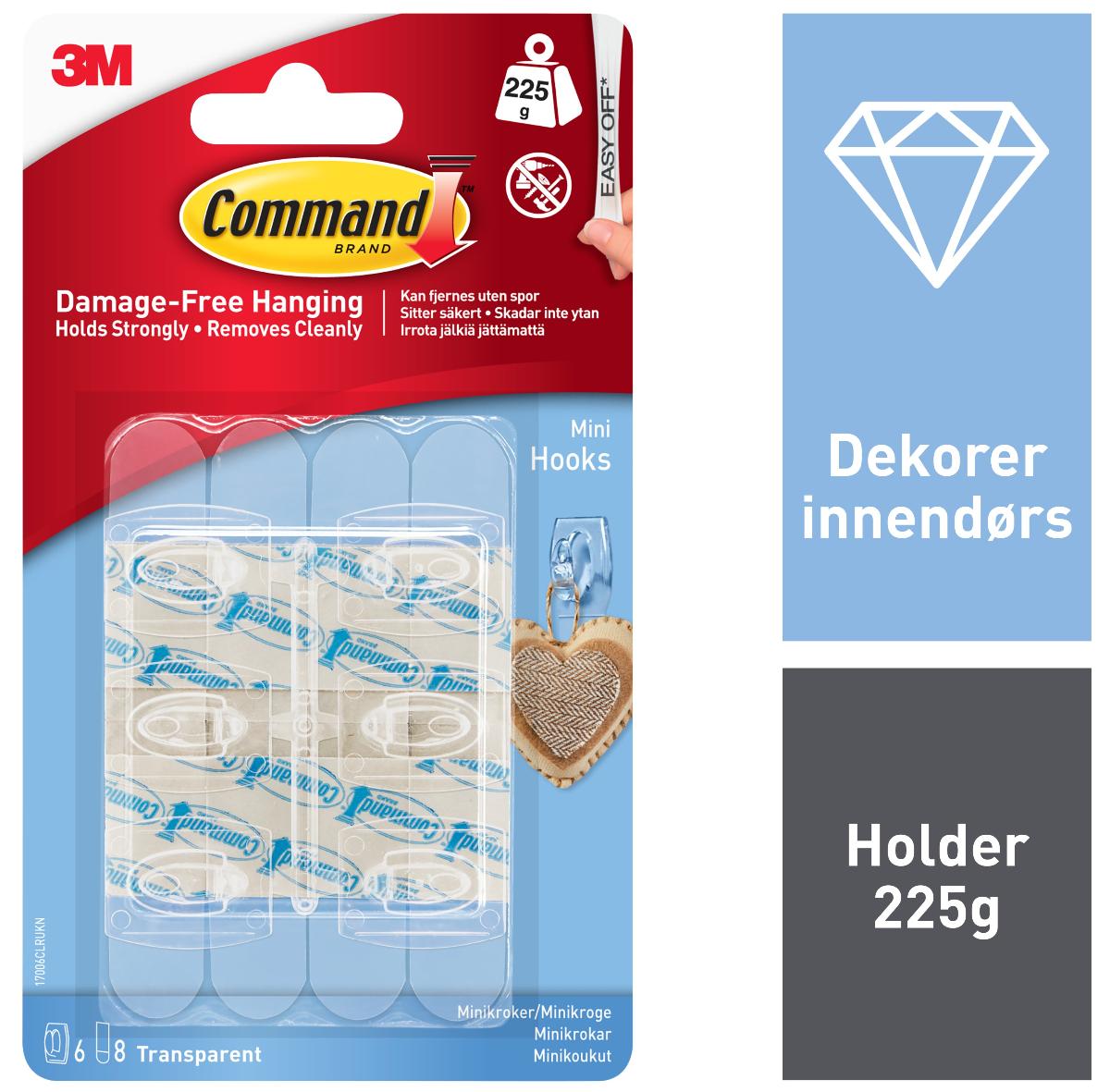 Command selvheftende gjennomsiktig krok, stor