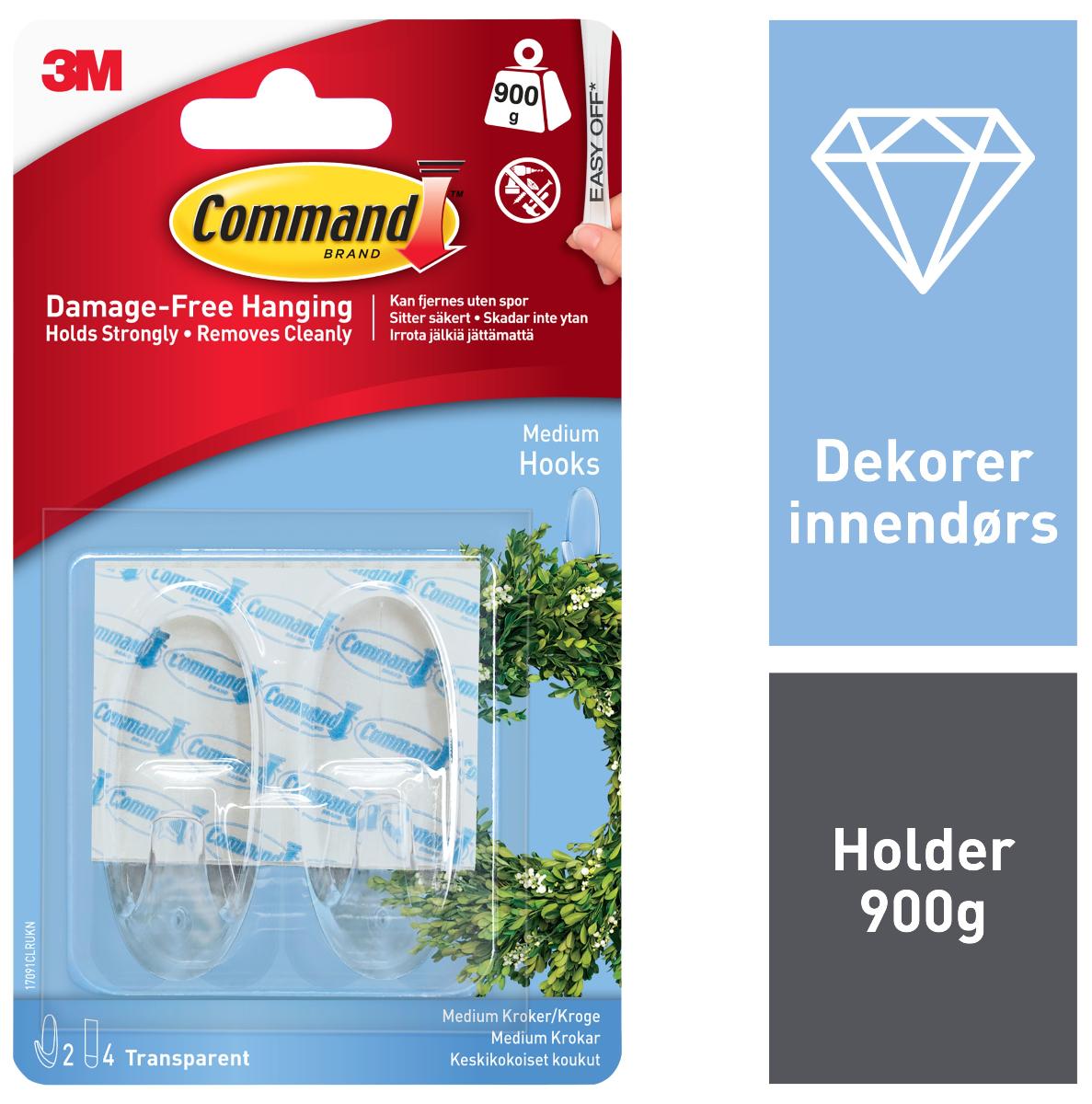 3M Command Selvklebende Medium Krok (2stk)