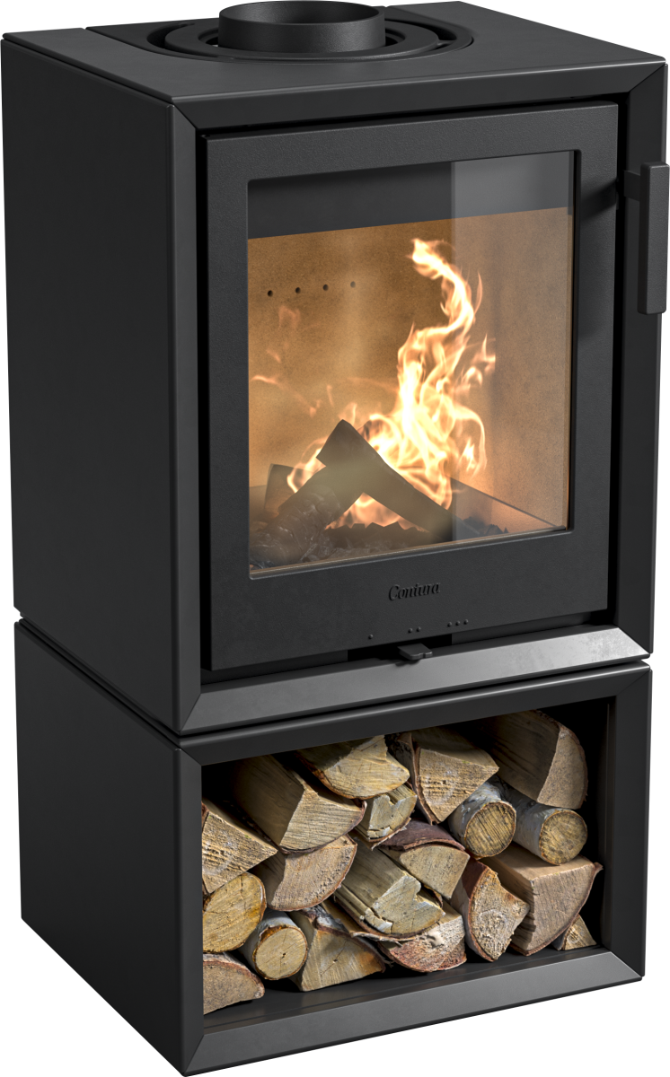 C210 svart vedovn med vedrom og ståldør