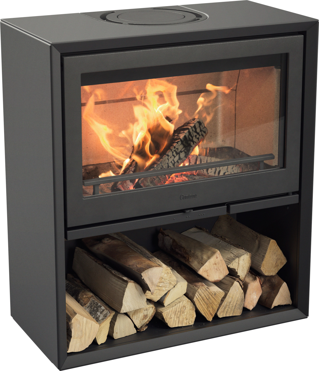 C210 svart vedovn med vedrom og glassdør