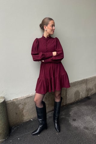 Liv Cord Solid Dress - Wine