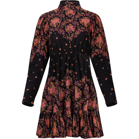 Baby Cord Mini Dress* - Black Paisley