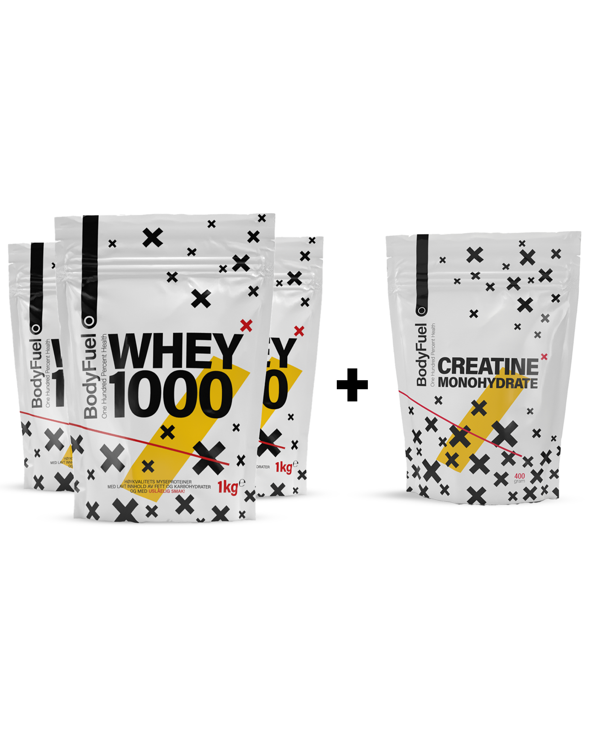 Bodyfuel Gympakken 1kg Whey 1000 (3-pack) & Creatine Monohydrate 400g