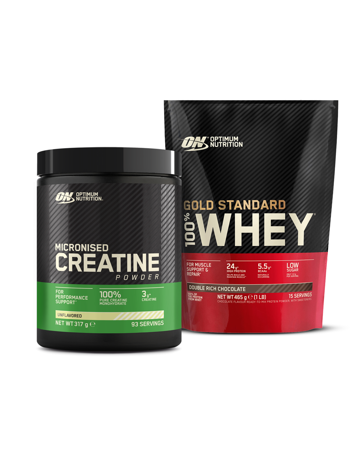 Optimum Nutrition startpakken 100% Whey Gold Standard 450g & Creatine Powder Unflavored 317g