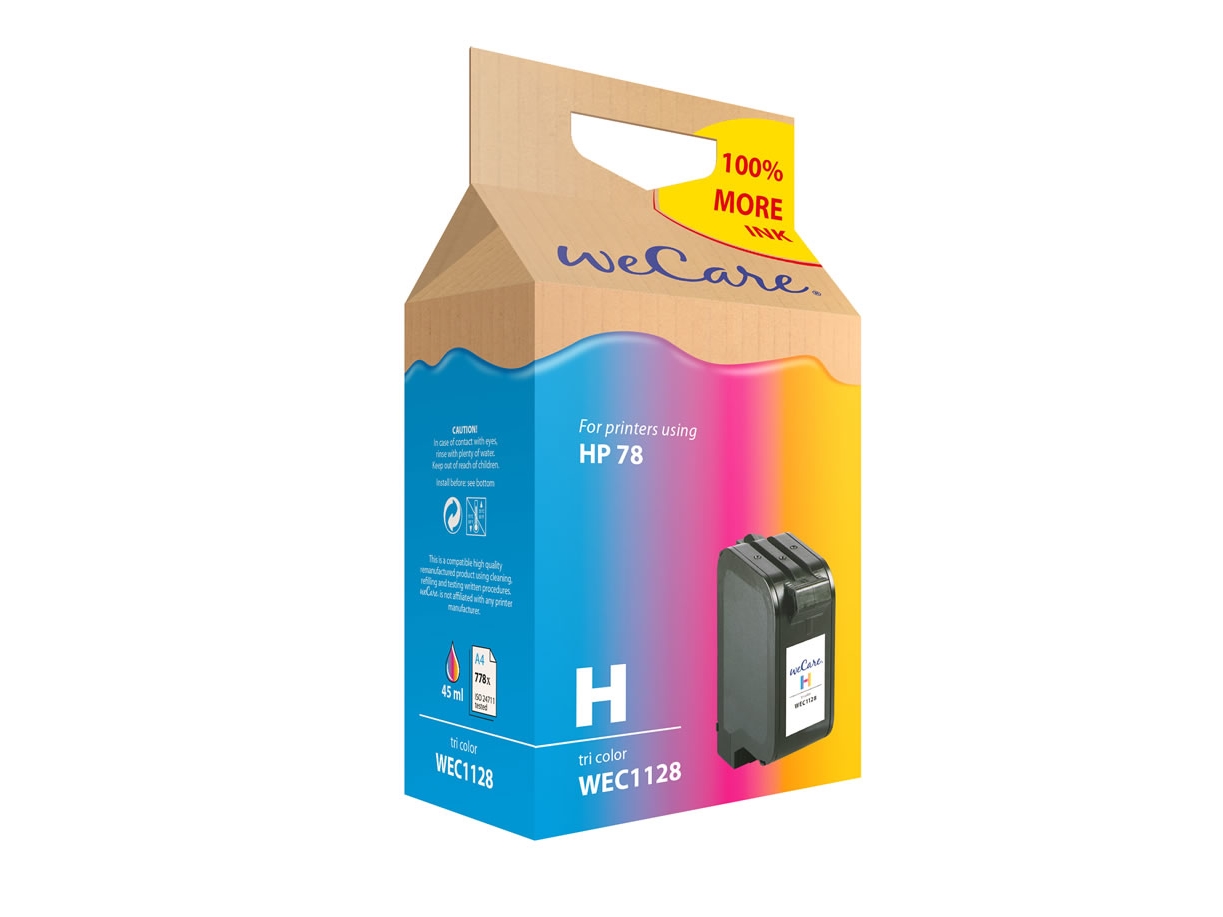 Wecare Wec1128 - 45 Ml - Farge (Cyan, Magenta, Gul) - Kompatibel - Gjenfabrikert - Blekkpatron (Alternativ For: Hp 78) - For Hp Color Copier 310 Fax 12Xx Officejet 51Xx, 720, 72Xx, G85, V30 Psc 500, 720, 920