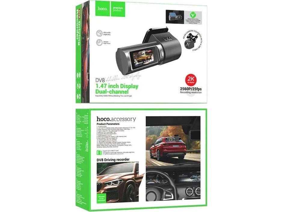 Hoco Hoco Dash Cam Bilkamera Med Skjerm + Bakkamera 2K Dv8 Sort