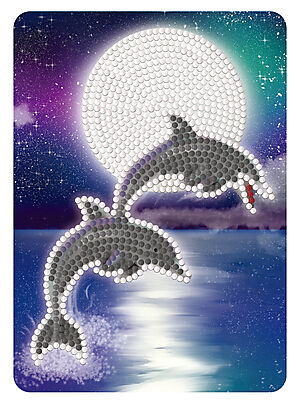 Perlekunst glow delfiner/måne 13x18cm