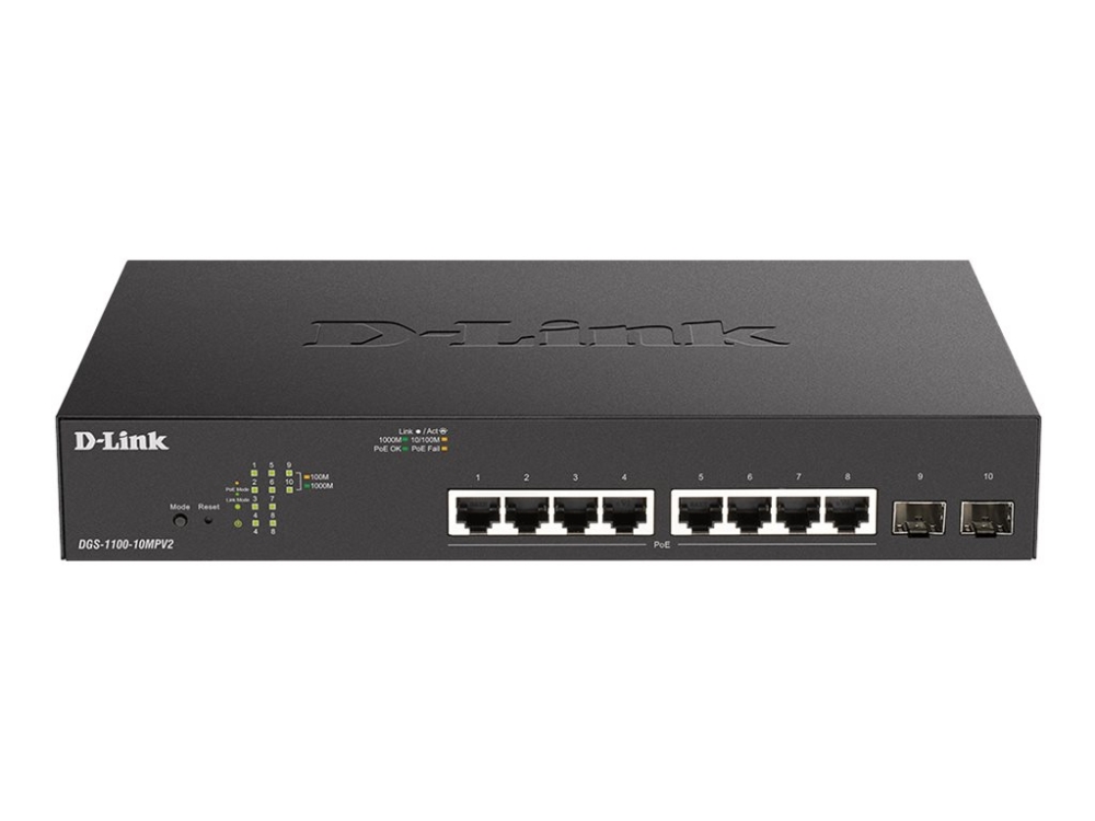 D-Link Dgs 1100-10Mpv2 - Switch - Smart - 8 X 10/100/1000 (Poe) + 2 X Gigabit Sfp - Rackmonterbar - Poe (130 W)