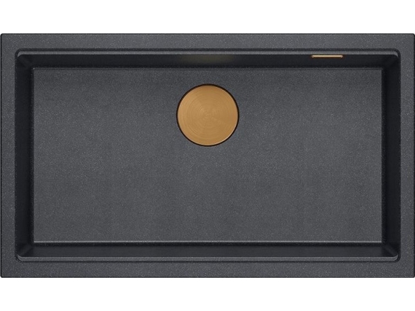 Graniteq Logan 110 Vask Graniteq Svart Diamant Vask 76X44x23,5 Cm 1-Skål Innfelt Med Manuell Sifon Gull