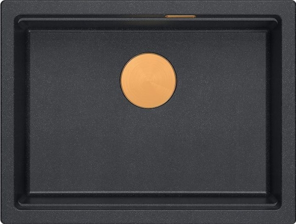 Graniteq Logan 100 Vask Graniteq Sort Diamant Vask 59,5X45,1X21,5 Cm 1-Skål Innfelt Med Manuell Sifon, Kobber