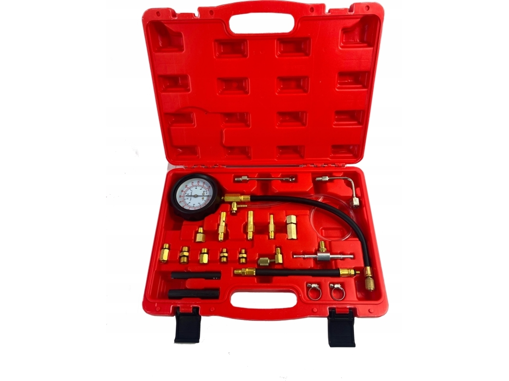 Rockforce Dieselmotor Kompresjonstrykktester Komplett Med Gjengeadaptere 0-70 Bar 19 Stk.