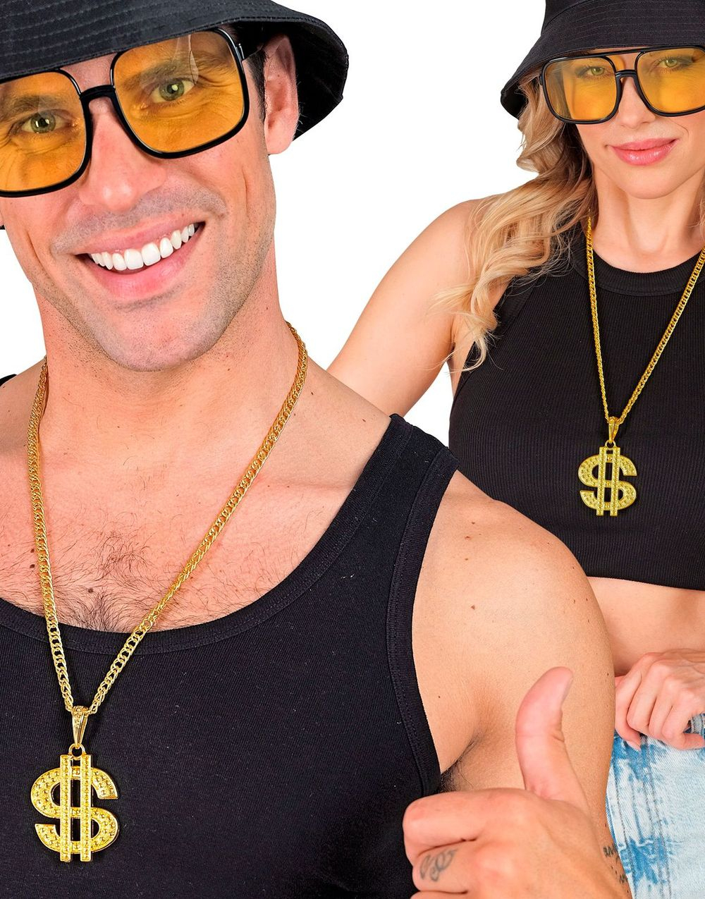 Gullfarget Smykke med Stort Dollartegn og Glitter