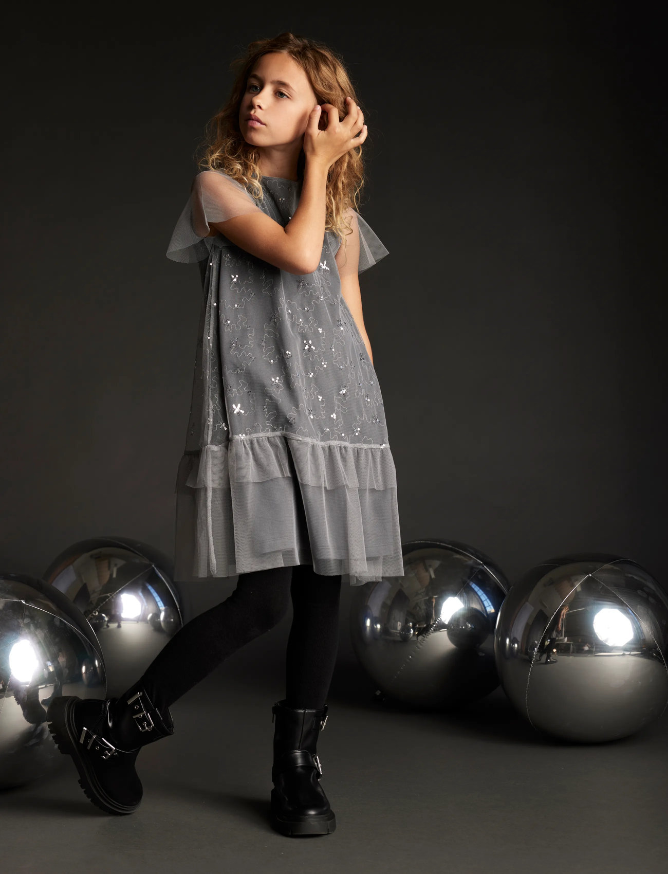 Creamie Dress Sequins Mesh - Grey - 110