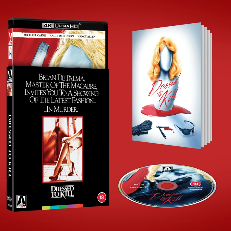 Finn et utvalg produkter relatert til 'Dressed to Kill', inkludert filmutgivelser på Blu-ray og 4K Ultra HD, samt tilbehør som merker og hårpleieprodukter som SAM Hair by McKnight Define & Defrizz Creme.