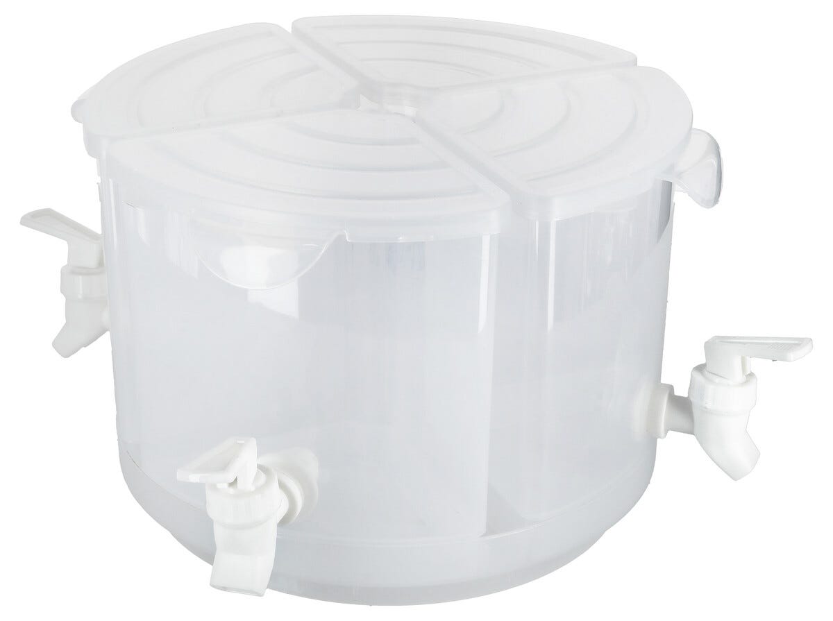 Drikkedispenser med 4 tappekraner, lokk og dreiebrett, 5,5 liter