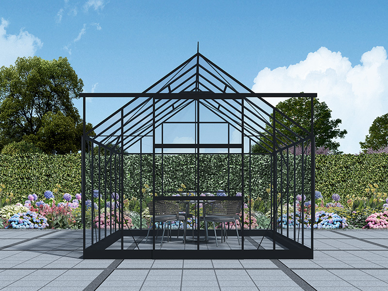 Drivhus i glass 3x3,68x2,6m m/sokkel og takdekor, 11,04m², Svart
