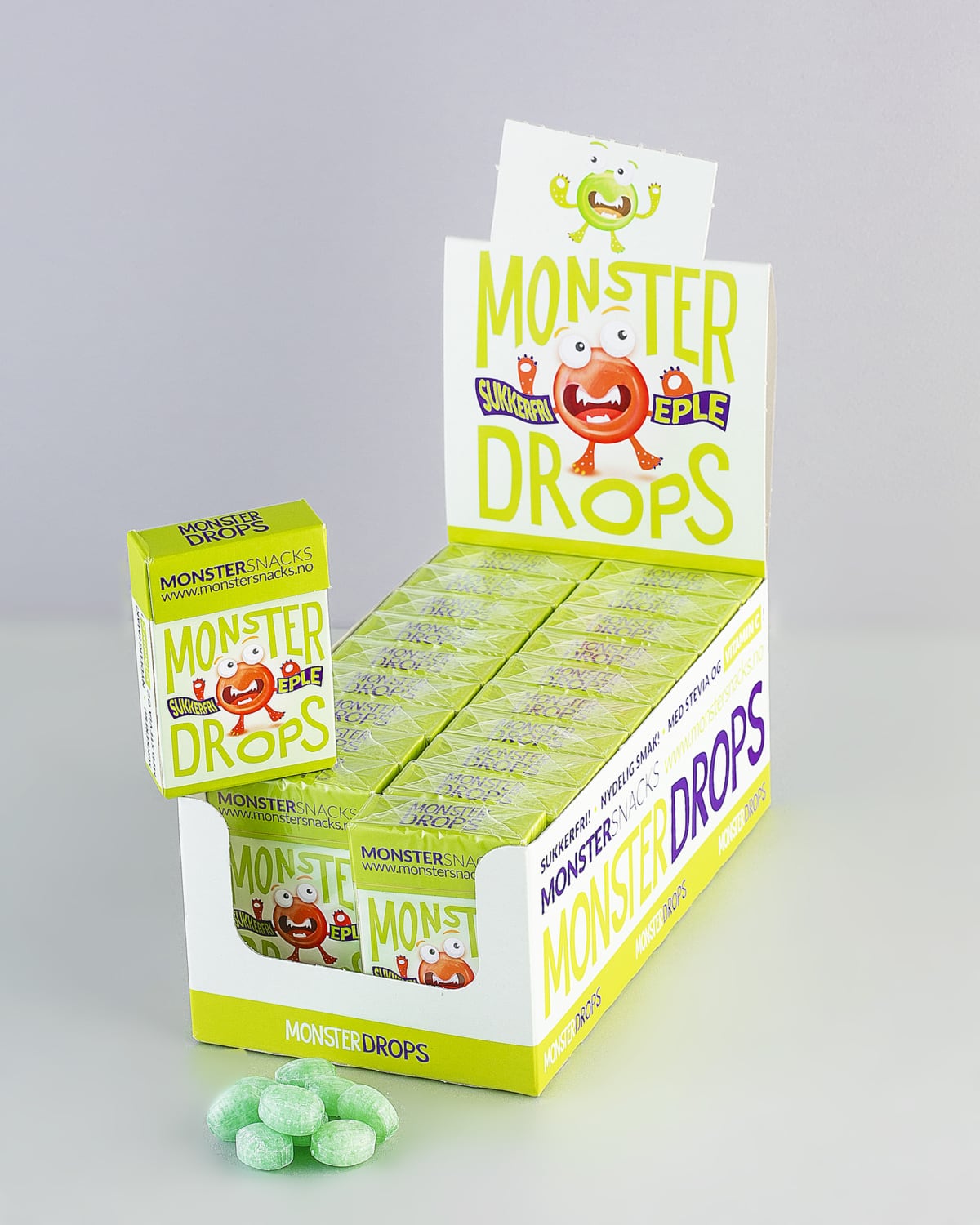 Monster Sukkerfri Drops - Eple - 20x36.5g - PAKKETILBUD!
