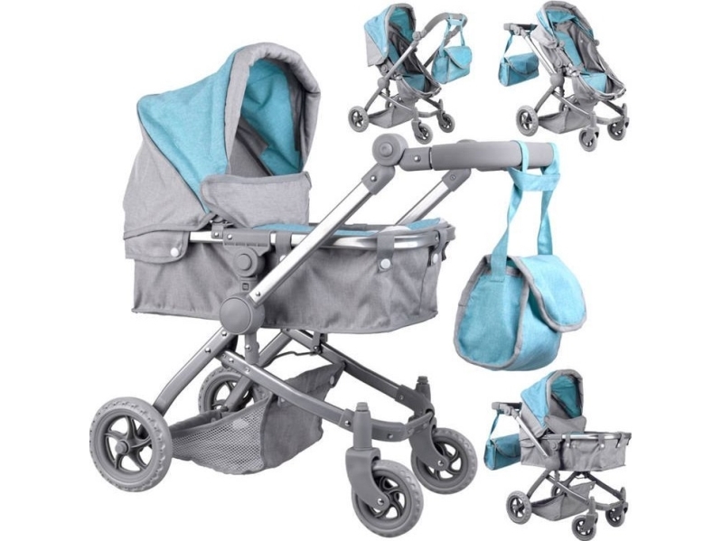 Jokomisiada Multifunksjonell Dukkevogn 4In1, Grå/Turkis