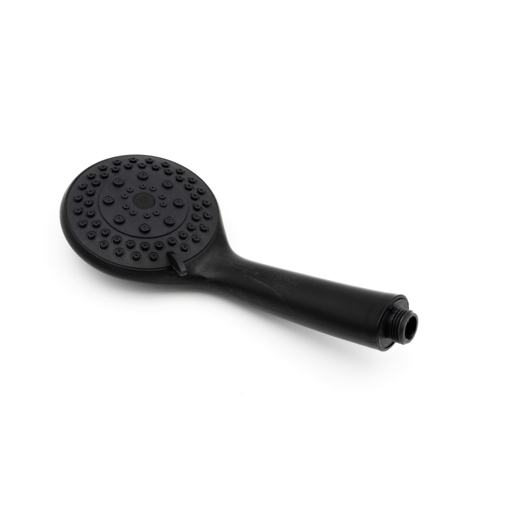 Sort dusjhode med justerbar sparedusjfunksjon