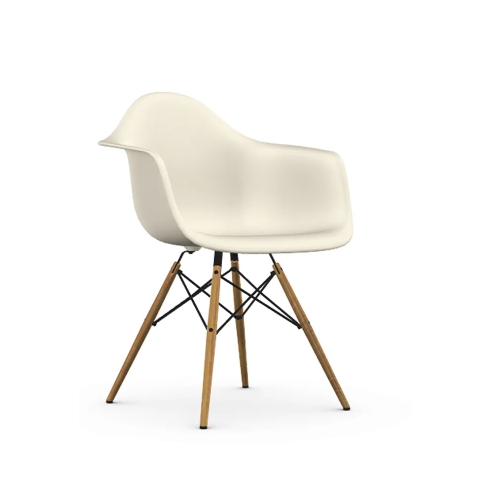 Vitra Eames Plastic Armchair RE DAW stol 85 cotton white-dark maple