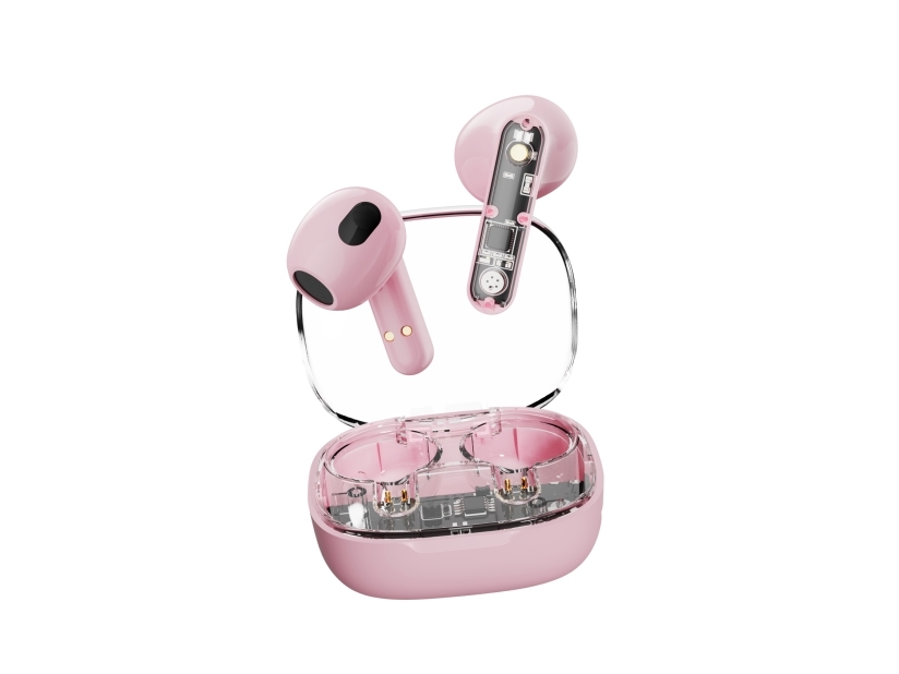 Streetz T150 Tws Earphones, Transparent Pink, Trådløs, 20 - 20000 Hz, Samtaler/Musikk, 37 G, Hodesett, Rosa