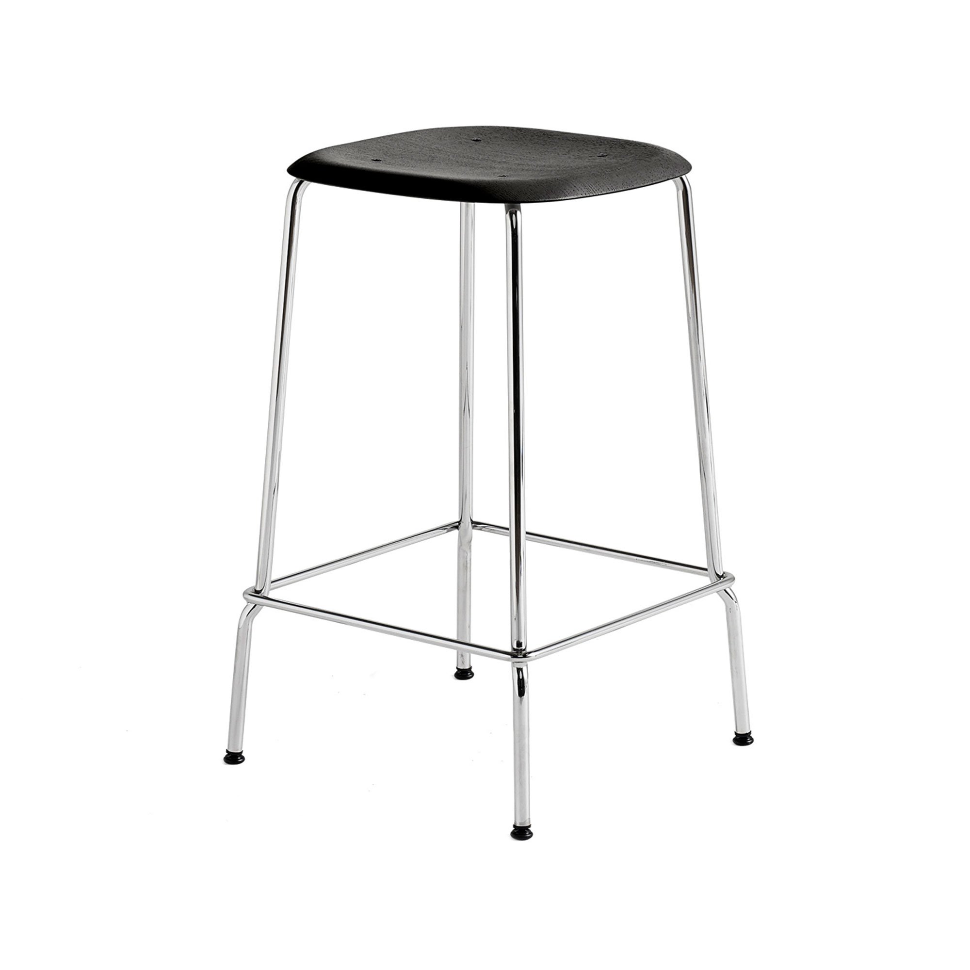 HAY - Soft Edge 80 Low / Black Water Based Lacq Oak / Chrome Base - Barstoler & barkrakker - Iskos-Berlin - Svart - Metall/Tre