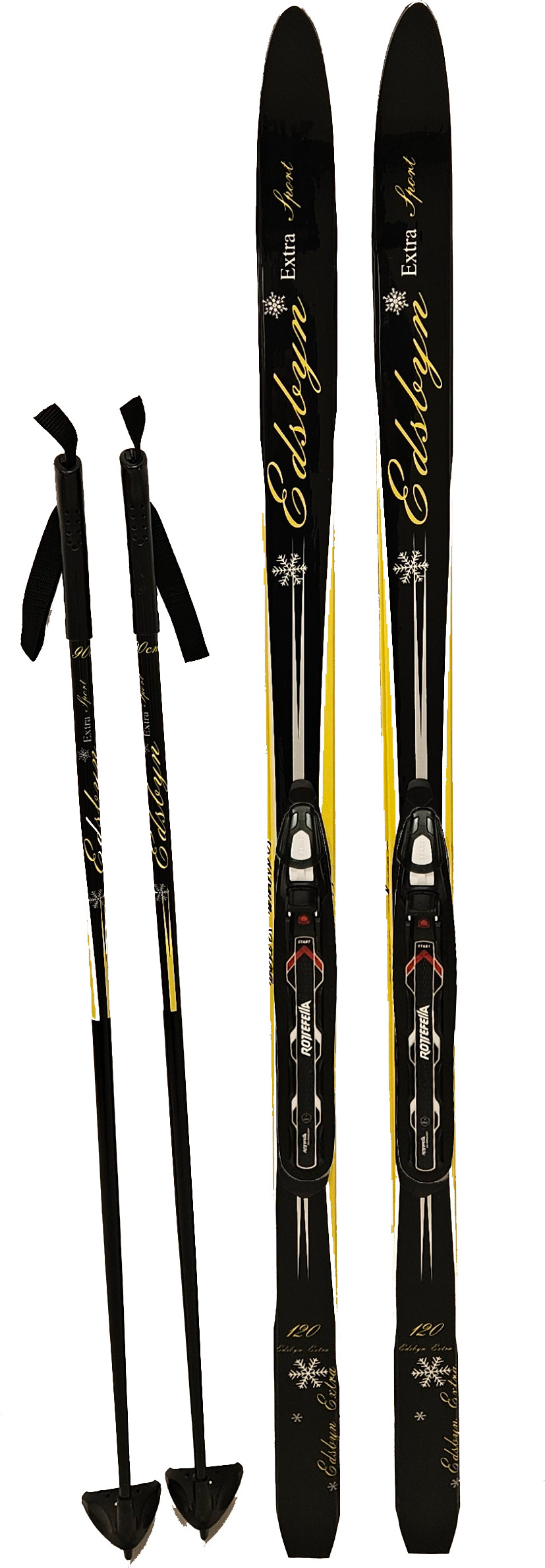 Edsbyn Kids' Ski Set with Cable Binding+Poles Black/yellow, 150
