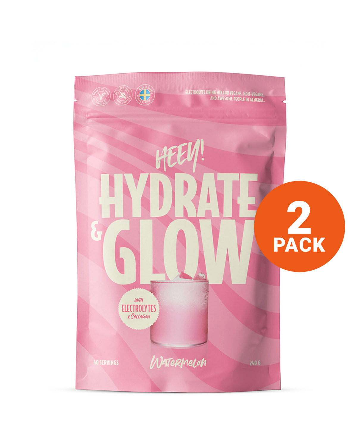 Heey! Hydrate & Glow Electrolytes+Collagen Watermelon 2x240g