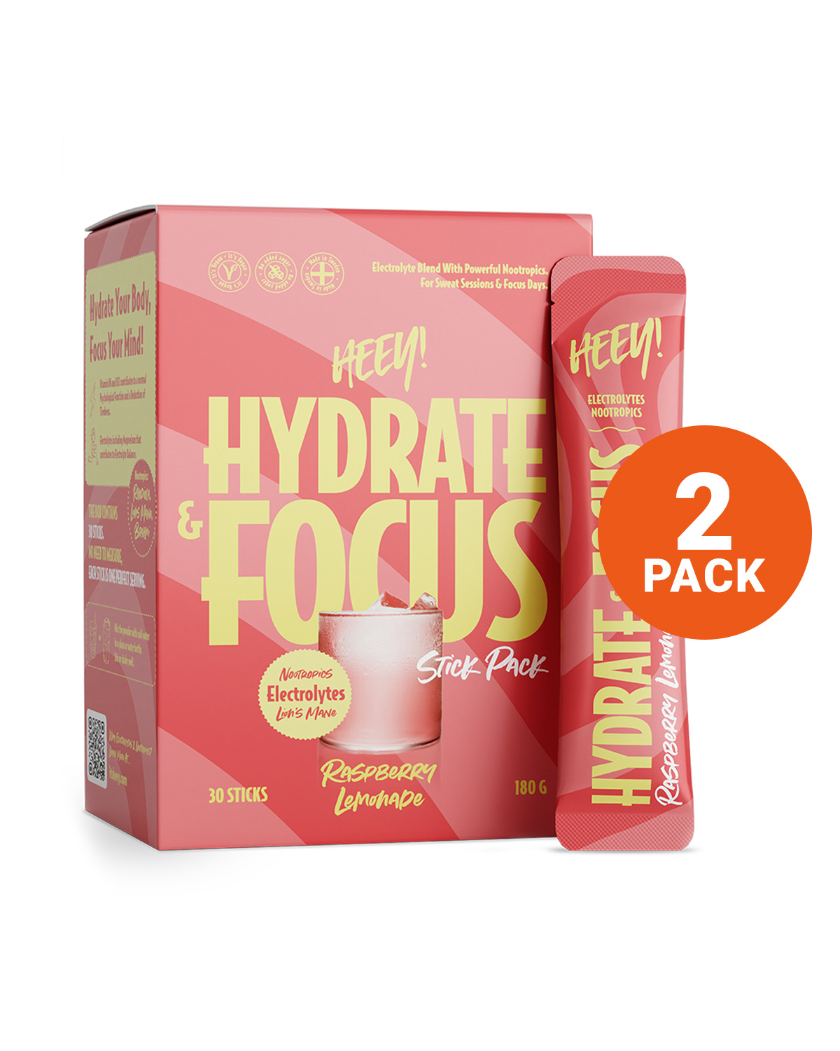 Heey! Hydrate & Focus Electrolytes Raspberry Lemonade 2x240g