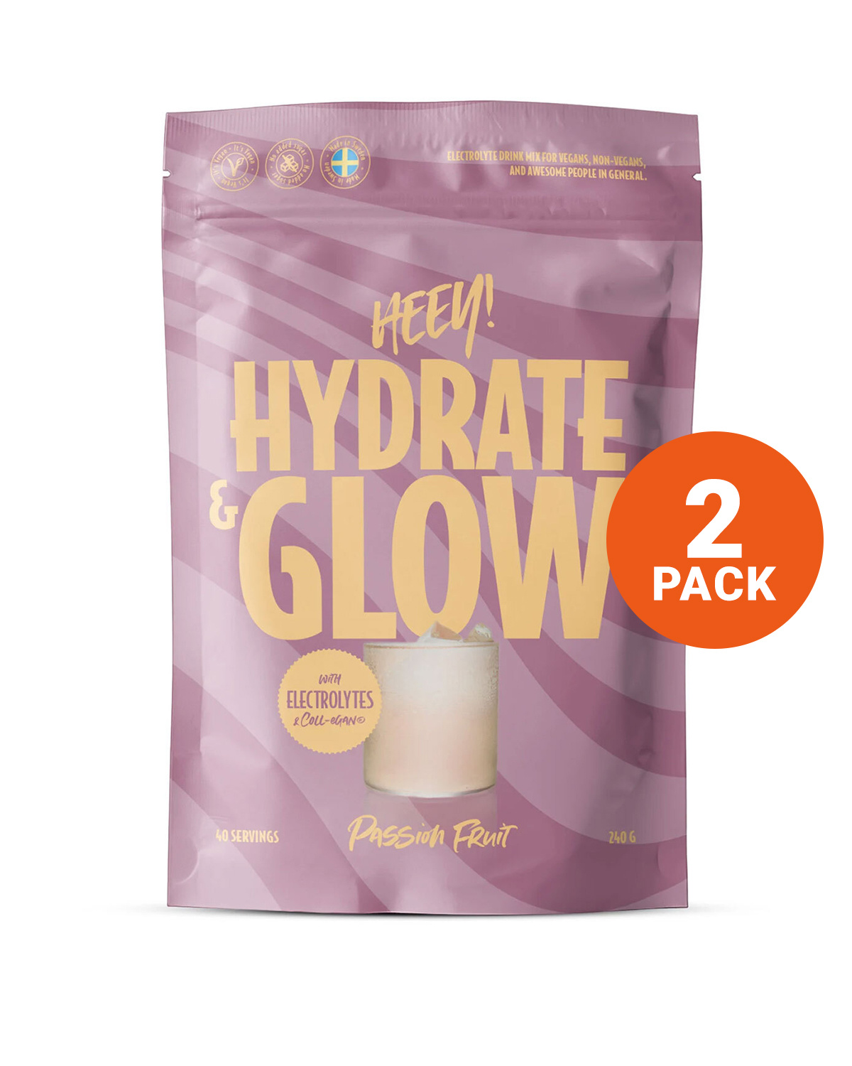Heey! Hydrate & Glow Electrolytes+Collagen Passionfruit 2x240g
